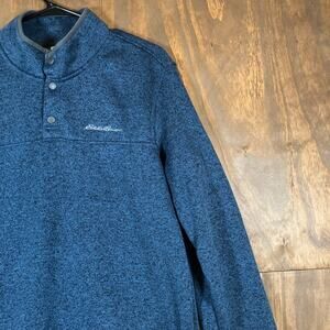 Eddie Bauer Mens Sweatshirt Blue Radiator Fleece Snap Mock Neck Long Sleeve L