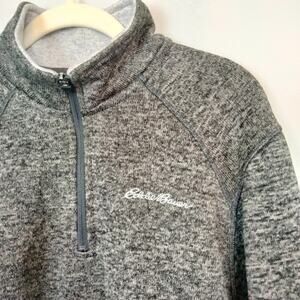 Eddie Bauer men's size medium grey spacedye quarter zip sweater or sweatshirt with soft fleece lining.