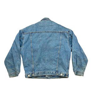 Eddie Bauer Men's Sz M Medium Plaid Flannel Lined Denim Trucker Jacket Coat Vntg