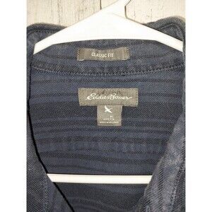 Eddie Bauer Men's Tall Large Blue Striped Canvas Long Sleeve Shirt