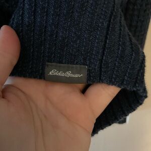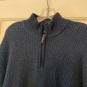 Eddie Bauer Men’s Tall Thermal Waffle Knit Sweater Blue Mock Quarter Zip LT NWT
