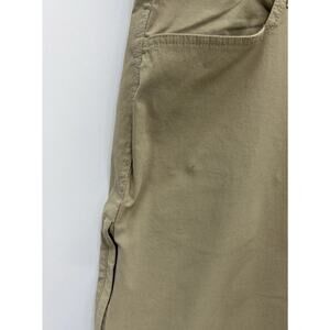 The Eddie Bauer Men's Tech Pants in size 36x39 are versatile utility workwear made from durable nylon material. These khaki-colored pants feature a relaxed fit with a mid-rise and straight leg style, making them suitable for various occasions including workwear. Easy to care for and comfortable, these pants are machine washable and can be worn in all seasons. The pants have a zipper and button closure, slash pockets, and a flat front design, making them a practical and stylish addition to any man's wardrobe.