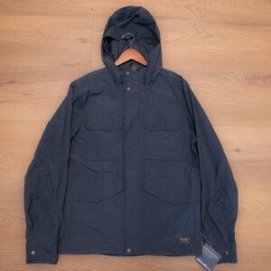 Navy Men's lightweight rain jacket -- New with tag. Features Eddie Bauer’s StormRepel DWR Plus finish to shed moisture with ease, along with multiple pockets for functional storage.