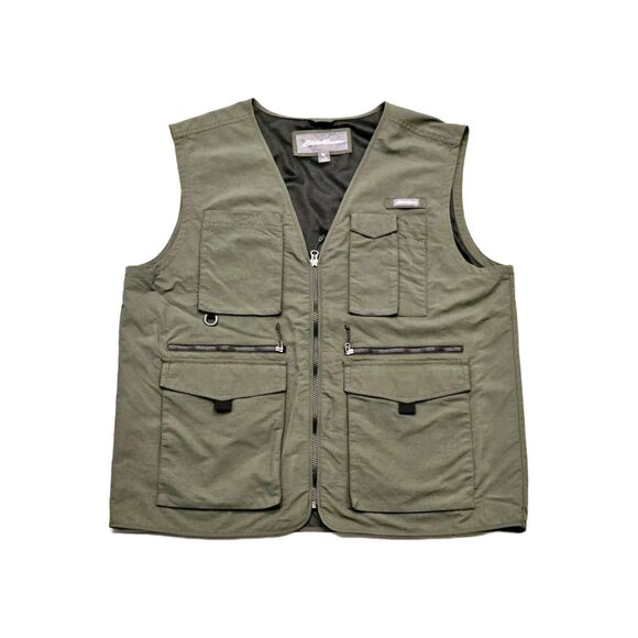 Eddie Bauer Men’s Utility Vest XL–Olive Green, Multi-Pocket, Hidden Compartment