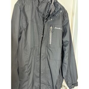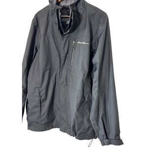 Eddie Bauer Mens Windbreaker Rain Jacket Full Zip Up Black Size M Zip No Hood