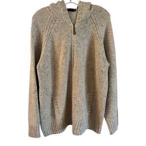 Eddie Bauer Men’s Wool Blend Hoodie Sweater Full Zip Tan Pockets Size XL