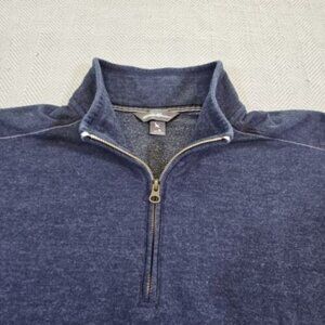 For your consideration, this Eddie Bauer Men's XL 1/4 Zip Heathered Gray Cotton Blend Long Sleeve Pullover.
