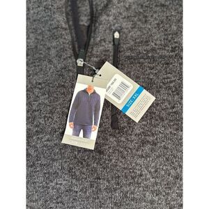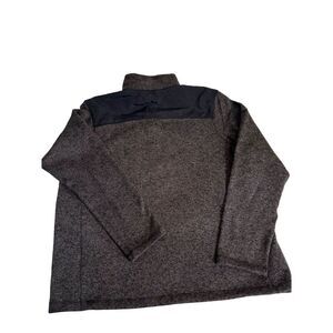 This Eddie Bauer men's pullover sweater in size XL is designed for both outdoor activities and casual wear. It features a mock neck and long sleeves, crafted from a blend of 100% polyester and 100% nylon knit fabric. The solid gray color and chest pocket with zipper add to its practicality. Manufactured in Indonesia, this sweater is suitable for various occasions, from hiking to everyday casual outings. The item is new with tags.