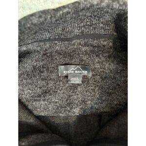 Keywords: Eddie Bauer, men's sweater, pullover, XL, gray, mock neck, long sleeve, outdoor, casual, knit, chest pocket, zipper, polyester, nylon, Indonesia.