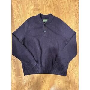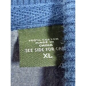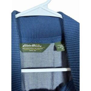 Eddie Bauer Men's XL Mock Neck Henley Sweatshirt Blue 100% Cotton Long Sleeve