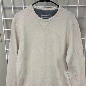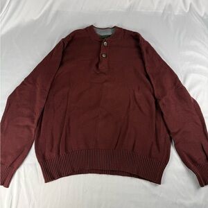 This Eddie Bauer pullover features a cozy ribbed mock neck with a 3-button henley placket, heavyweight cotton knit, and ribbed cuffs/hem. Perfect for everyday wear, outdoor comfort, or classic casual cabin style.