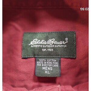 This Eddie Bauer shirt, crafted for a distinguished look, combines durability with comfort. Its rich rust tone adds a sophisticated touch, while the cotton fabric ensures a breathable and relaxed fit. With a classic button-down style, it's ideal for both business and casual settings.