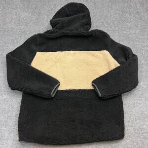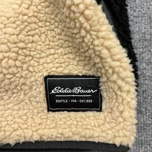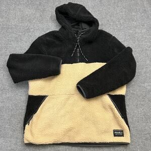 Eddie Bauer Men’s XL Sherpa Fleece Hoodie Pullover Black Beige Half Zip Warm