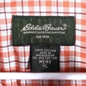 Eddie Bauer Mens XL Short Sleeve Plaid Button Front Cotton Shirt Orange Check