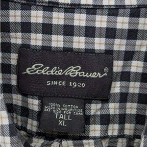 Eddie Bauer Mens XL Tall plaid button down shirt black/ white