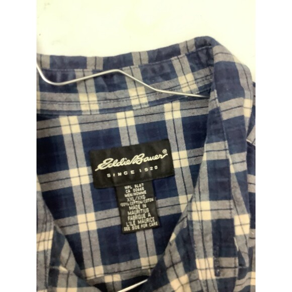 Eddie Bauer Mens XXL Button Down Cotton Long Sleeve Plaid Shirt Blue & Beige