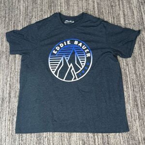 Eddie Bauer Mens 2XL Mountain Graphic T Shirt Blue Short Sleeves Logo Outdoor
