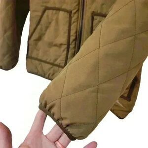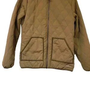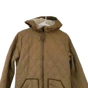 Eddie Bauer Men's Brown Poly Quilted Sherpa Fleece Lined Zip Front Jacket w Hood EUC sz S
