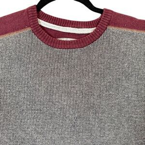 Eddie Bauer Merino Wool Blend Sweater with waffle knit Front Burgundy Gray XLT