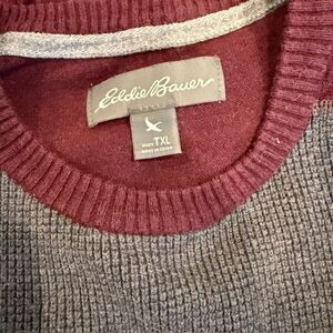 Eddie Bauer Merino Wool Blend Sweater with waffle knit Front Burgundy Gray XLT. Excellent condition. See photos for details and measurements.