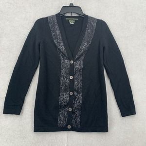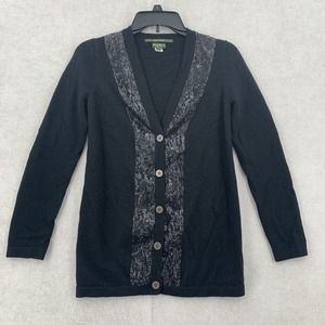 Eddie Bauer Merino Wool Button Cardigan Dark‎ Academia Black Blouse sweater S