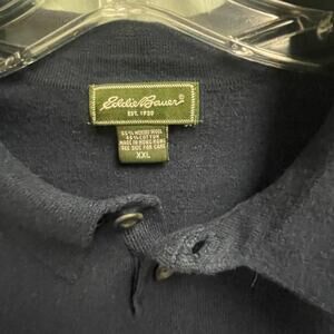 Eddie Bauer Merino Wool Navy Long Sleeve Polo Shirt XXL Collared Knit Blue