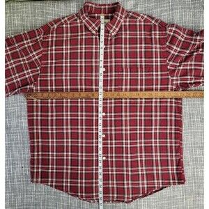 Eddie Bauer Mid-Weight Button Up Shirt Red Plaid 100% Cotton Men's L
