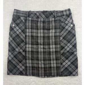 Eddie Bauer Mini Skirt Wool Blend Women 8 Black Gray Plaid Pockets Academia