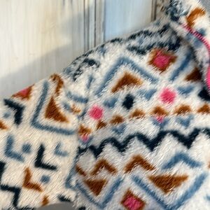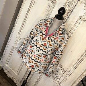 Eddie Bauer Multi Color Geometric Graphic Henley Zip Fluffy Sweat Shirt Size Med