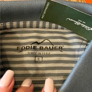 Eddie Bauer NWT Gray Polo Shirt Classic Striped Design
