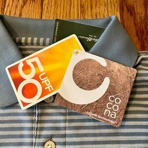 This NWT Eddie Bauer polo shirt showcases a timeless gray striped pattern, crafted for a sporty and casual style. Made from a soft cotton blend, it features a traditional polo collar and short sleeves, perfect for everyday comfort.