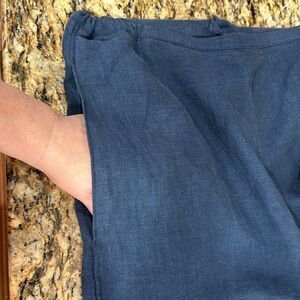 Eddie Bauer Navy Blue Linen High Waisted Wide Leg Pants Size L