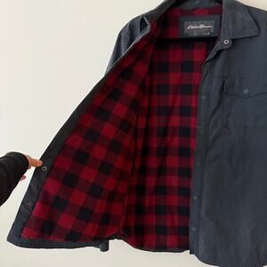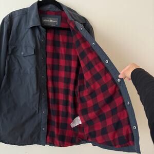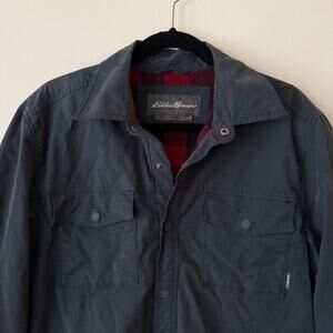 Eddie Bauer Navy Fleece Lined Snap Button Overshirt Jacket/Shacket W/Pockets-M