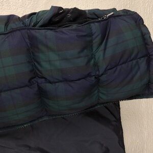 Eddie Bauer Navy Plaid Goose Down Sleeveless Funnel Neck Zip Front Jacke…
