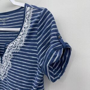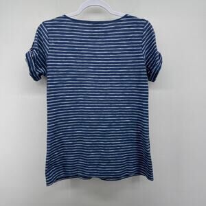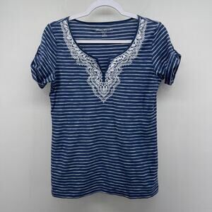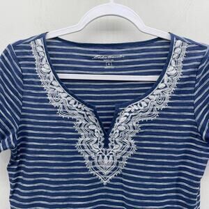Eddie Bauer Navy White Stripe Embroidered T Shirt