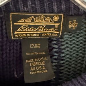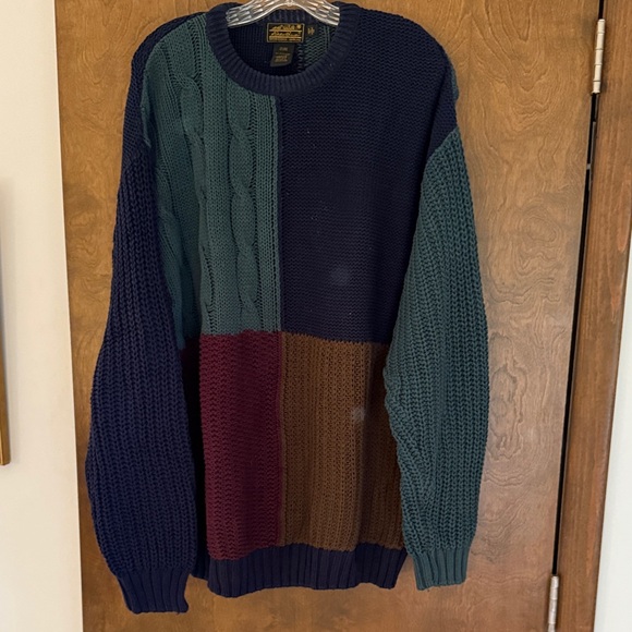 Eddie Bauer Navy and Green Patchwork Crewneck Sweater
