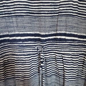 Eddie Bauer Navy and White Variegated Striped Belted Cotton Dress, XL, 16-18