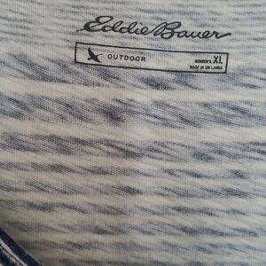 Eddie Bauer soft cotton belted dress with navy and white variegated stripes, slightly nautical. Cute with a Jean jacket! XL, comfy fit, fits 16-18 well.