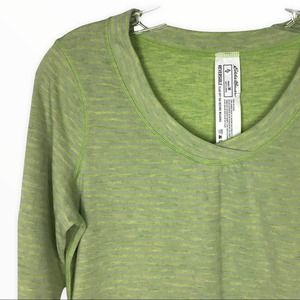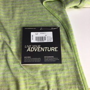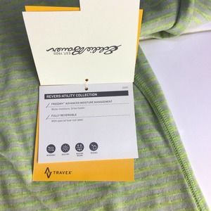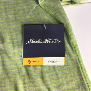 Eddie Bauer FreeDry shirt, neon green and gray space dye, reversible striped and solid designs, V neck, long sleeve, athletic, casual.