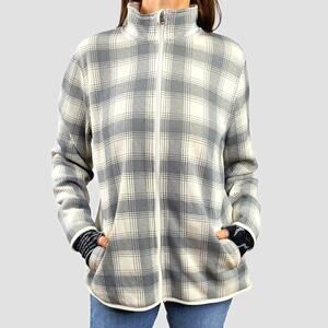 Eddie Bauer Neutral Plaid Full Zip Fleece Jacket Sz XL