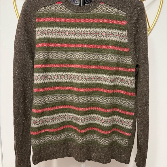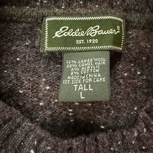 Eddie Bauer Nordic Fair Isle Green Lamb's Wool Camel Hair Sweater Size L Tall