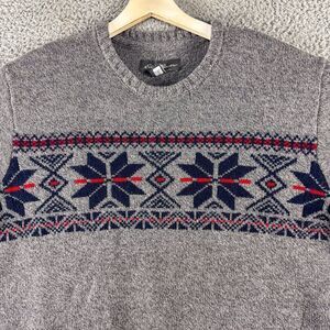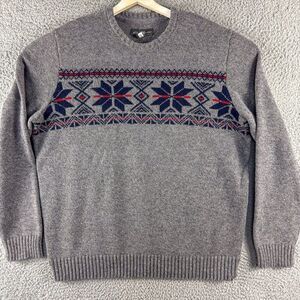Eddie Bauer Nordic Sweater Mens XL Gray Wool Blend Winter Colorful Outdoor Ski