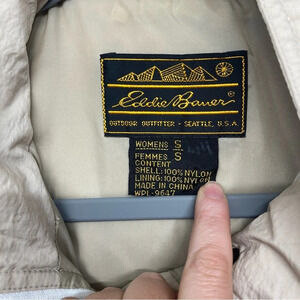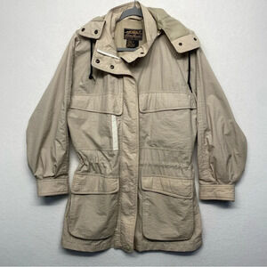 Eddie Bauer Nylon Anorak Jacket Beige Detatchable Hood S Wasit Cinch