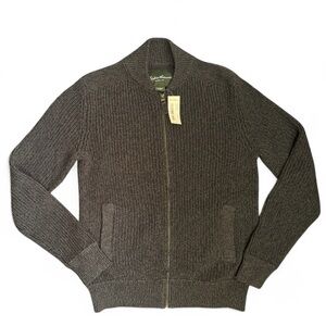 Eddie Bauer Olive Zip Up Chunky Cardigan - Cable Knit - Ribbed Trim - Mens Small