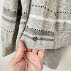 Eddie Bauer Open Front Cardigan Sweater Grey Striped Pointelle Knit Women's S
