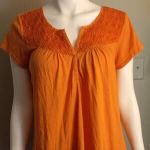 Eddie Bauer Orange Embroidered Peasant Blouse Women's Large Dopamine Dressing