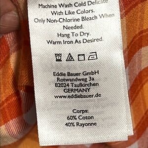 Eddie Bauer Orange white Plaid Button Up Cap Sleeve Blouse Top