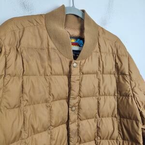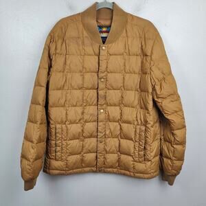Eddie Bauer Original 1957 Down Super Sweater Mens Large Tan Quilted Jacket FLAWS