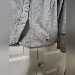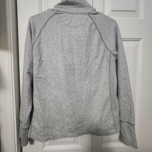 Stylish gray full-zip jacket. Features a high collar and long sleeves. Perfect for casual wear.