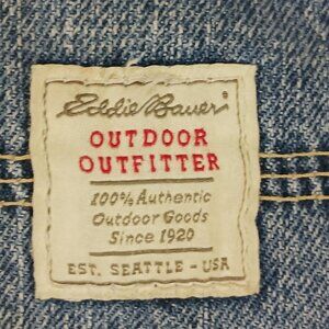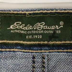 Check out these super sturdy Eddie Bauer jeans! They're a classic blue denim with cool carpenter details like a hammer loop and extra pockets, making them so practical. These are perfect for working outdoors, casual projects, or just a really comfortable and laid-back look!